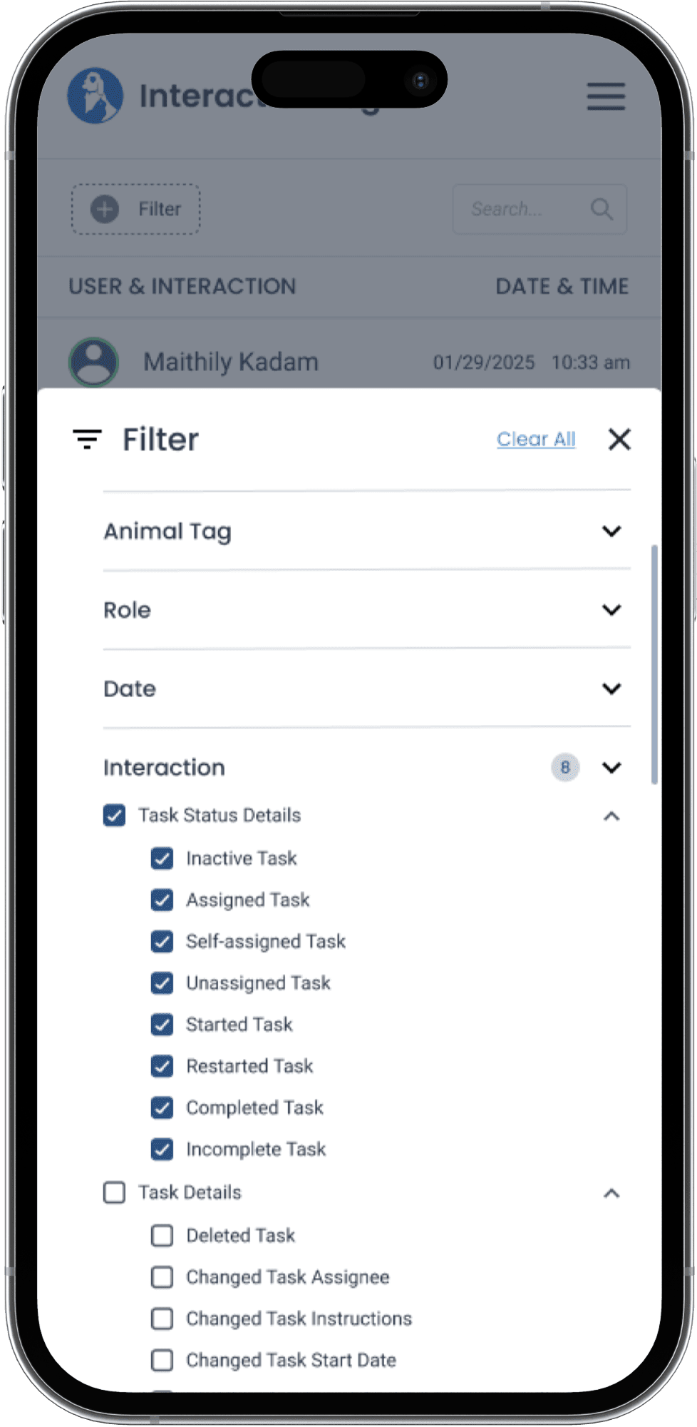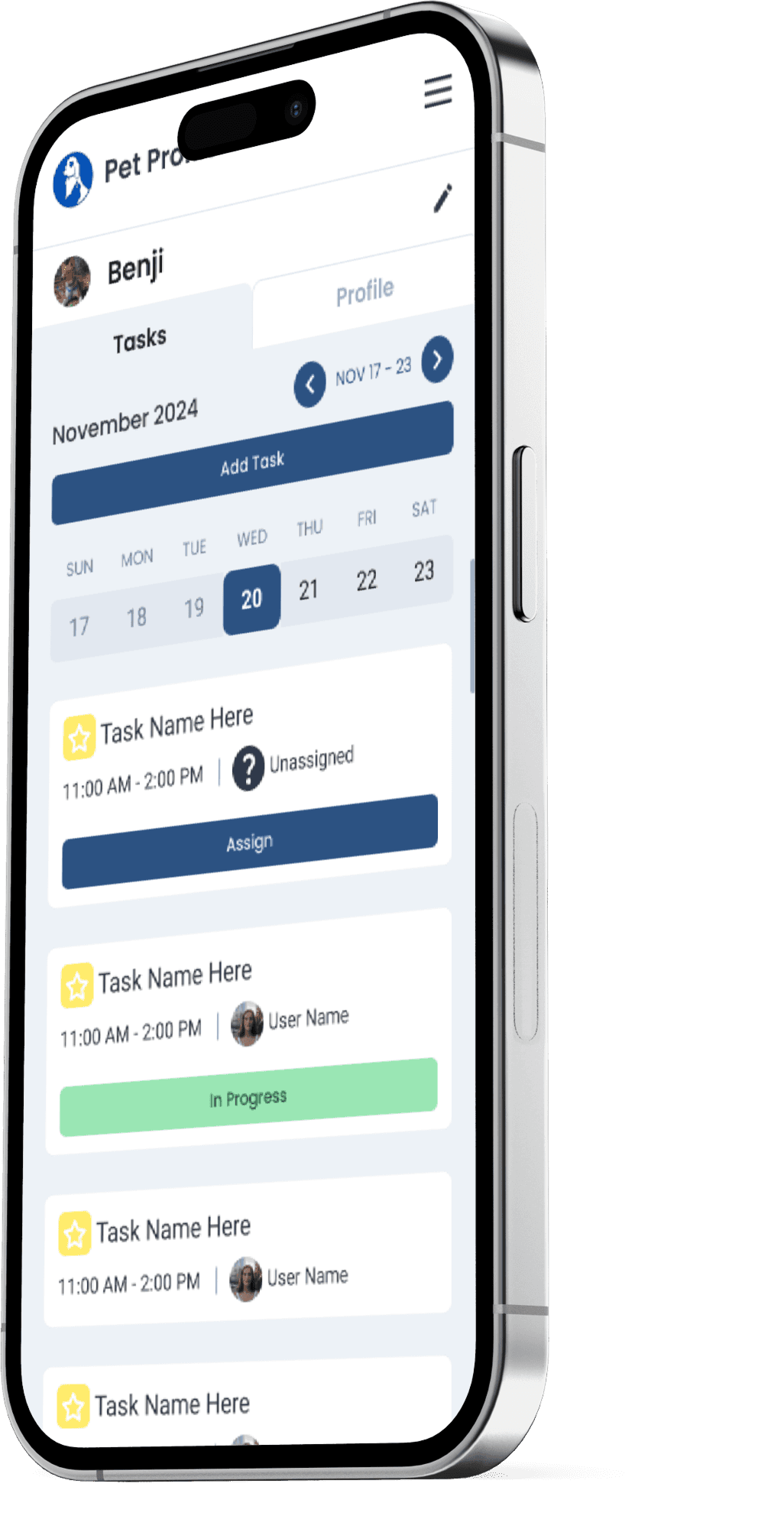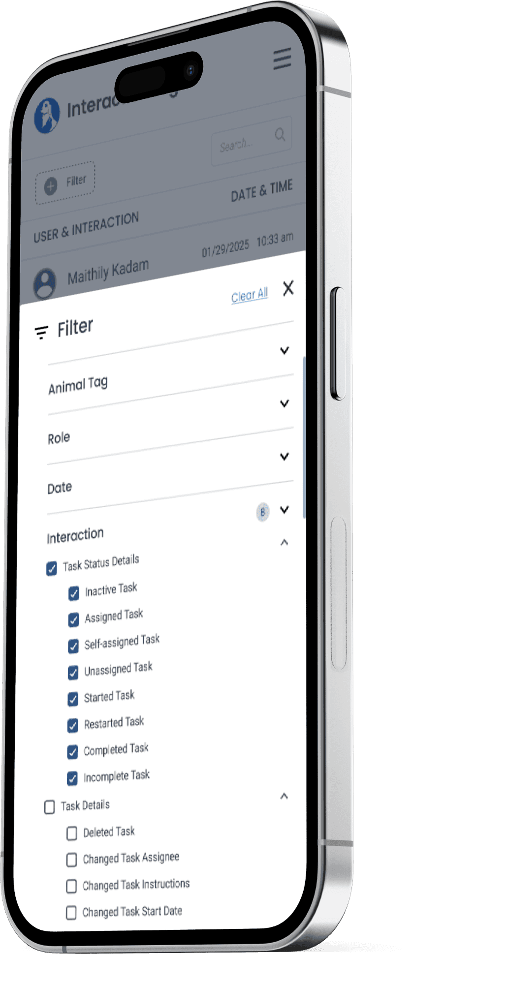 Animals, tasks, schedules, and notes live in distinct views instead of one dense system.